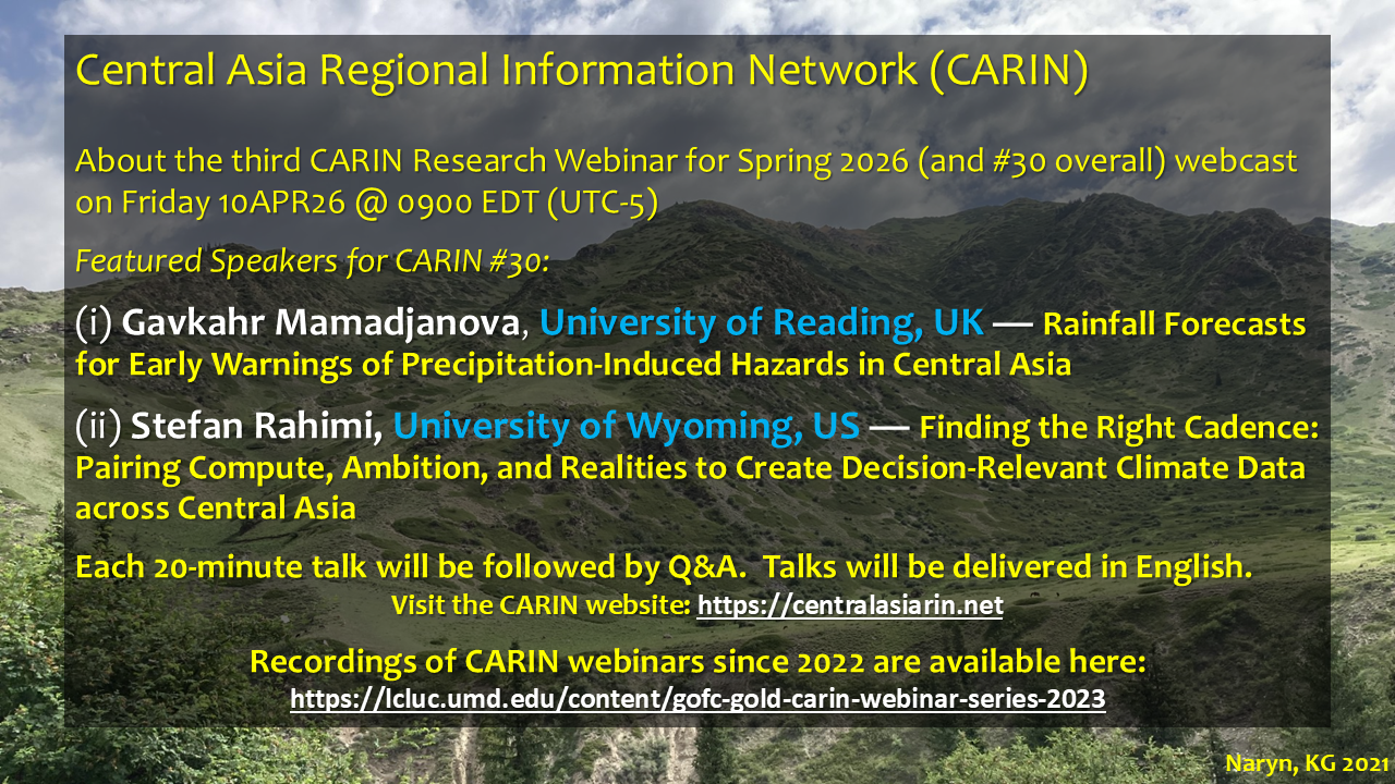 CARIN is a platform to promote and support collaboration among remote sensing experts, researchers, academicians, NGOs, and relevant government agencies in Central Asia.