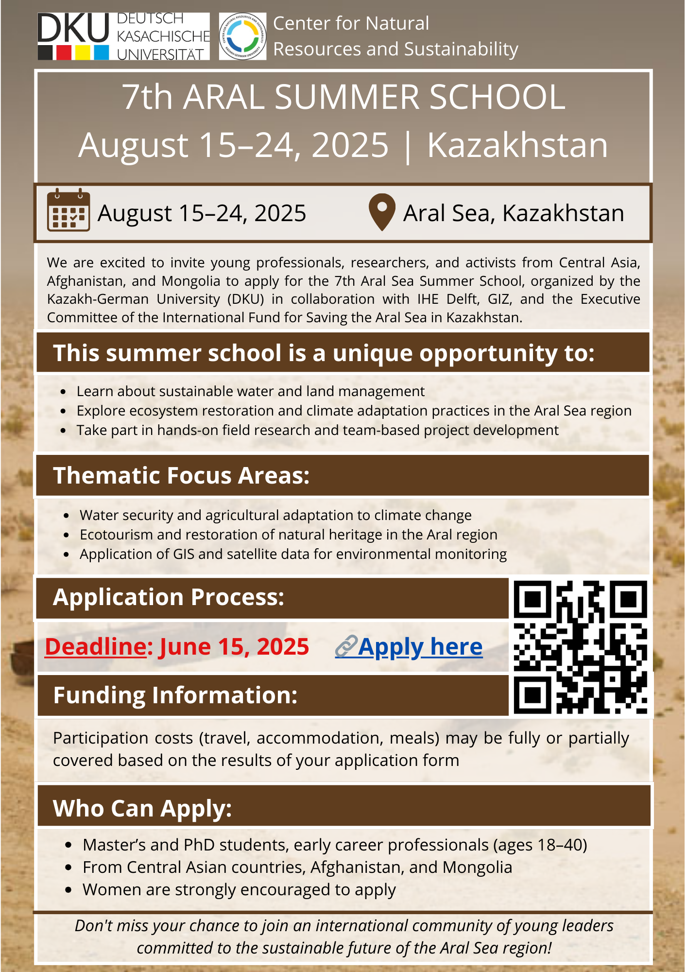 ● Expand the knowledge of future leaders about climate change and its impacts on water, food, and socio-economic security in the Central Asian region.